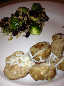 Garlic Parmesan Turkey Meatballs & Roasted Brussels Sprouts with Cranberries and Barley